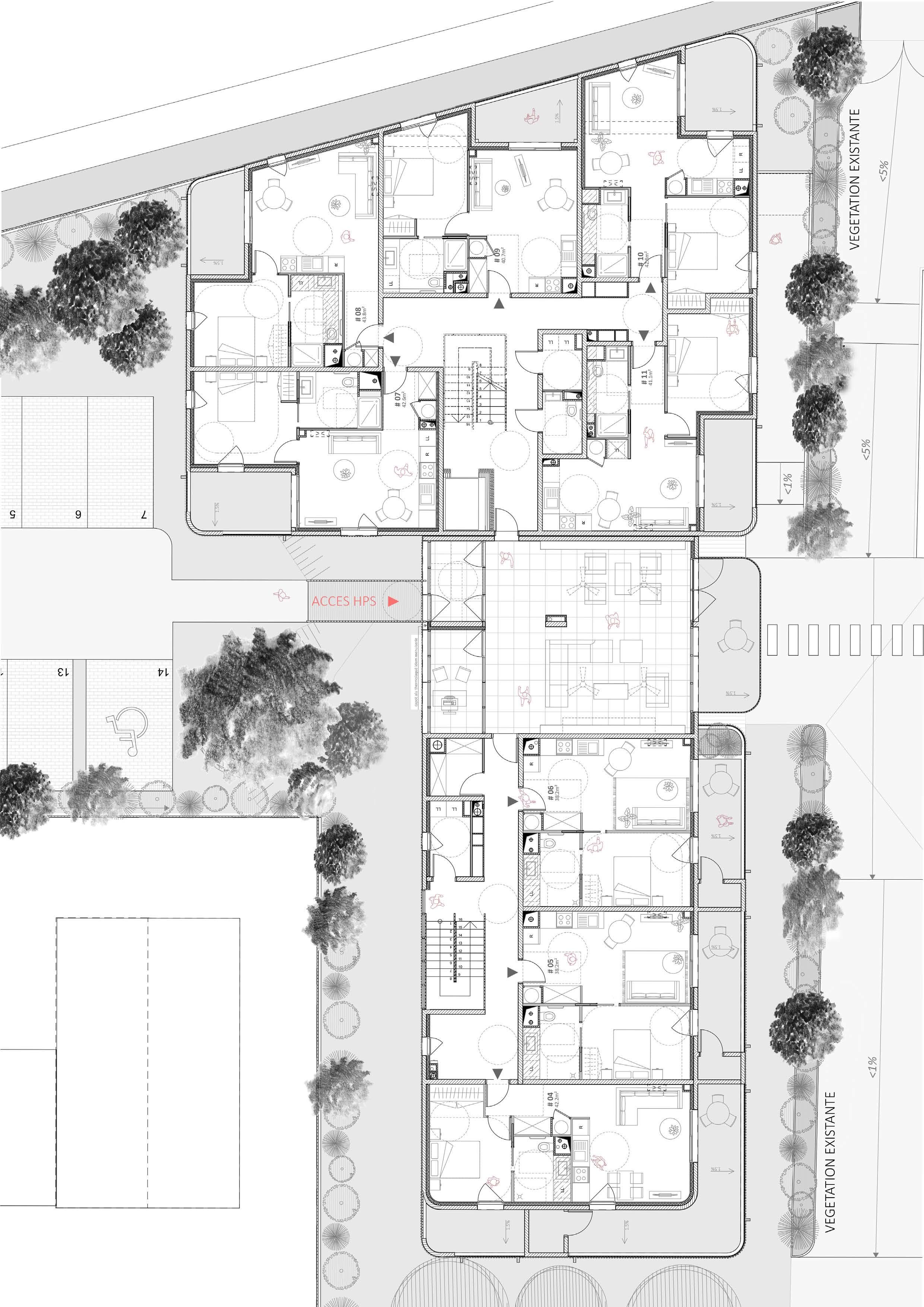 - Programme : Habitat pour séniors de 16 app T2 + des salles communes + celliers